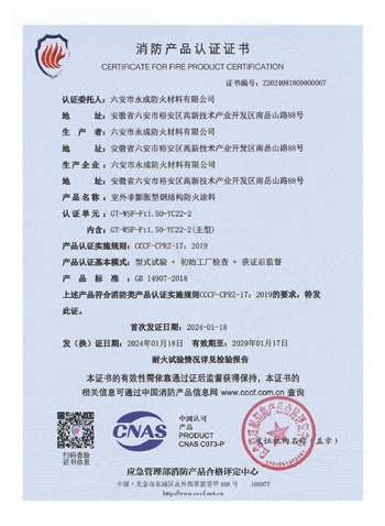 GT-WSF-Ft2.00-YC22-2消防认证证书-室外非膨胀(特种)